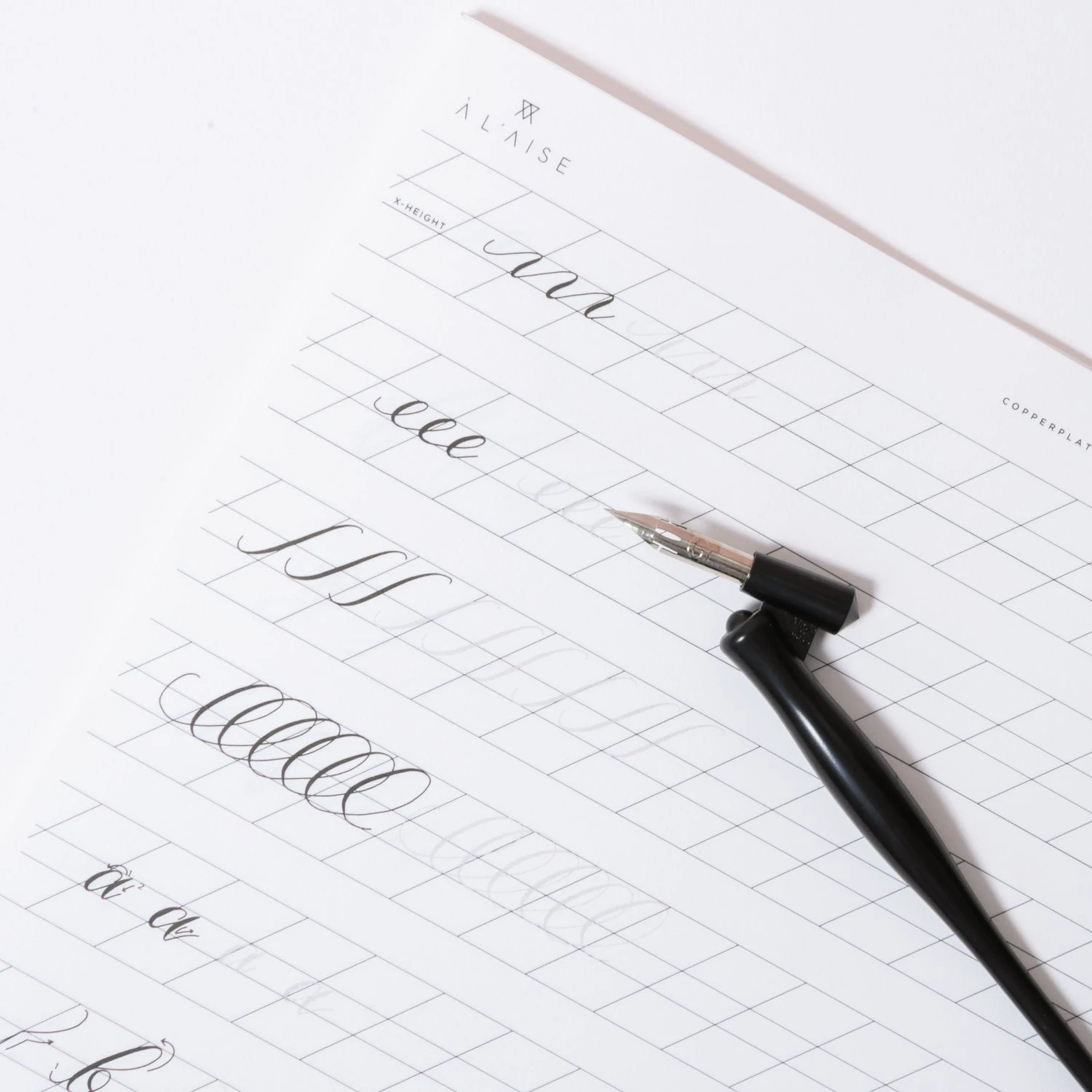 This calligraphy workbook is an essential practice guide book for any budding calligrapher with beginners exercises, lowercase, uppercase and ampersand. These beginners calligraphy guide sheets also help to build up muscle memory, which is an essential way to learn and progress calligraphy skills.