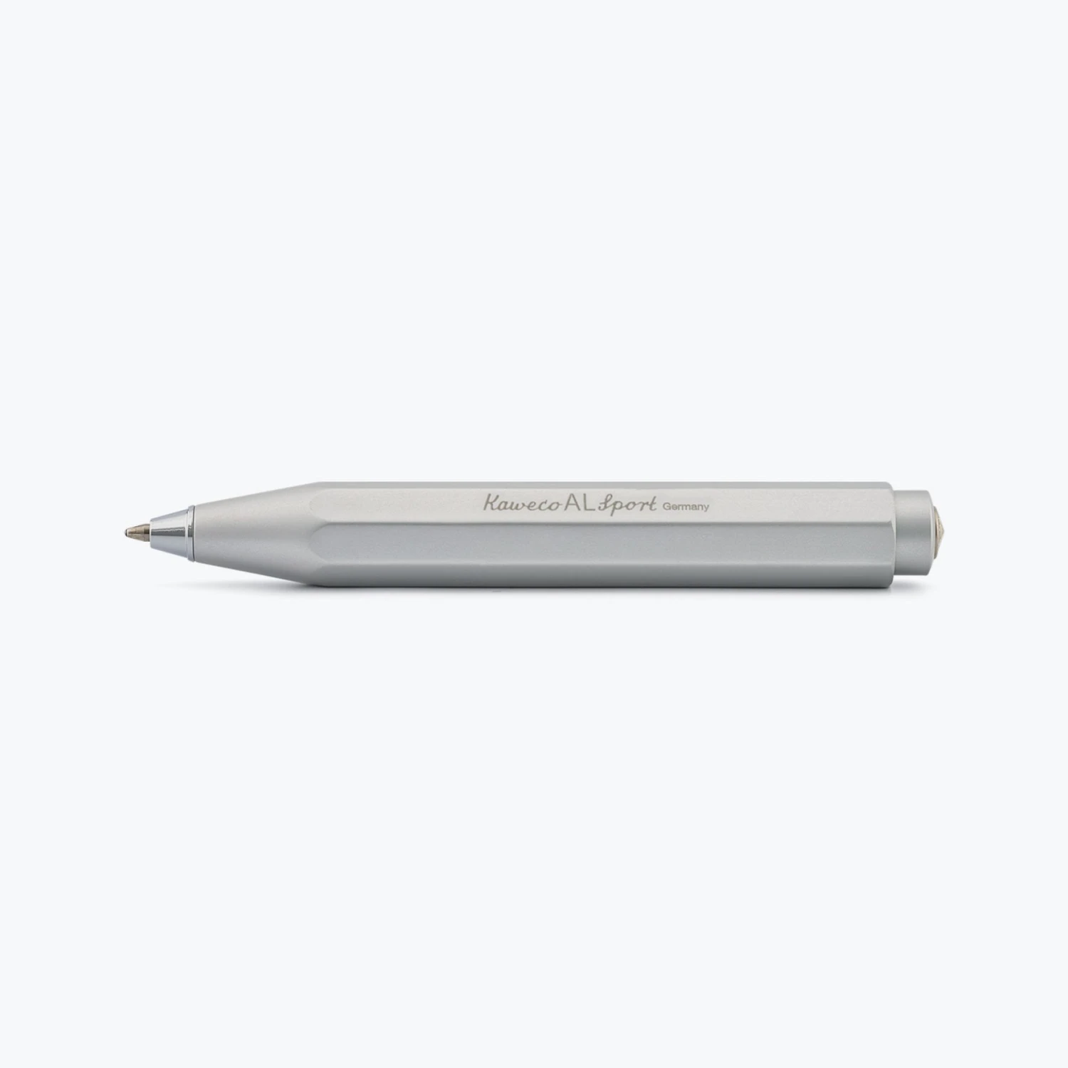 The silver Kaweco AL Sport ballpoint pen balances a sporty look with superior quality. It closely follows the original octagonal design, which is very compact at just 10.3cm, making it easy to carry around and comfortable to write with. It is made from high-grade aluminium and features a silver metal Kaweco logo on the top of each push button, which uses a retractable mechanism.