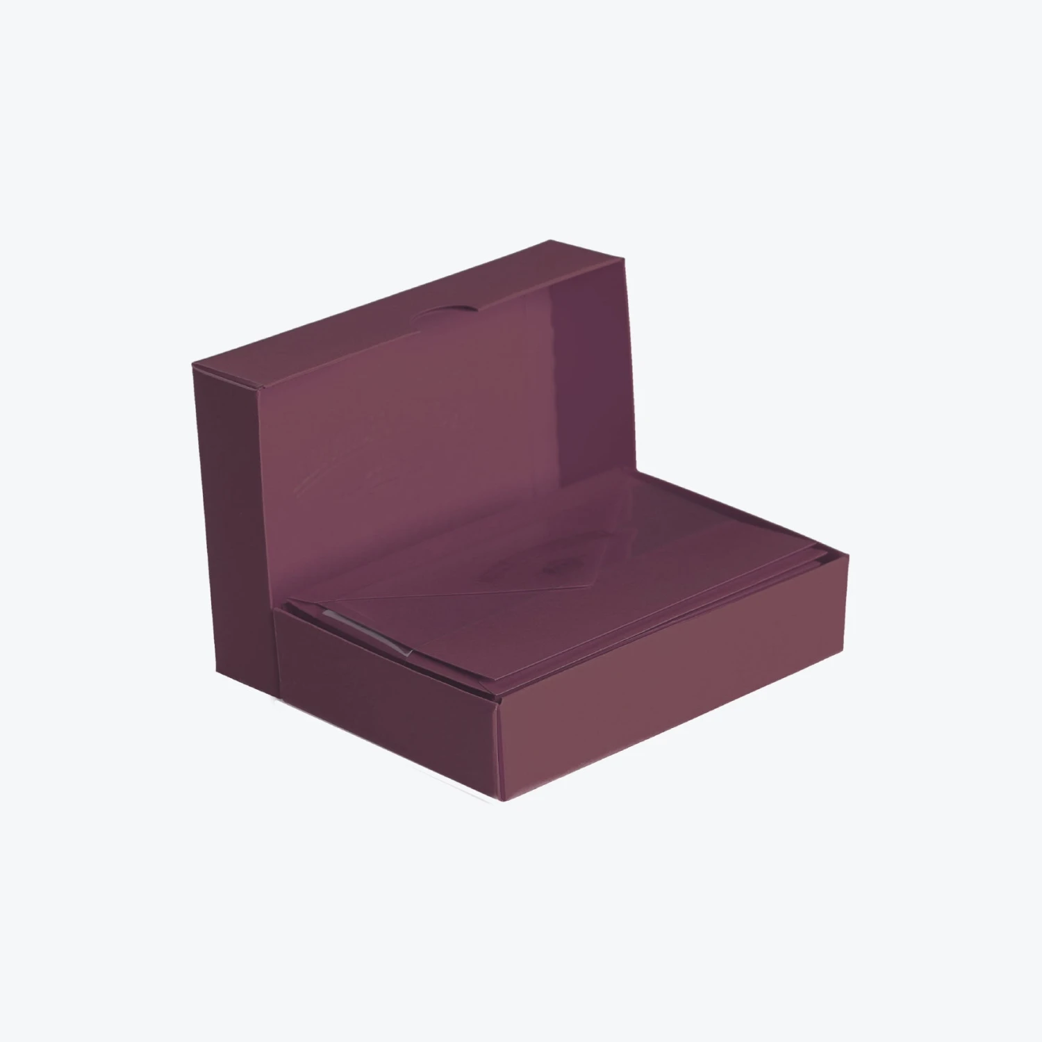 Made in Belgium, the Crown Mill Bordeaux card set includes 25 burgundy cards (300gsm) and envelopes (120gsm) in a matching box. Perfect for staying in touch or making your own greeting cards.