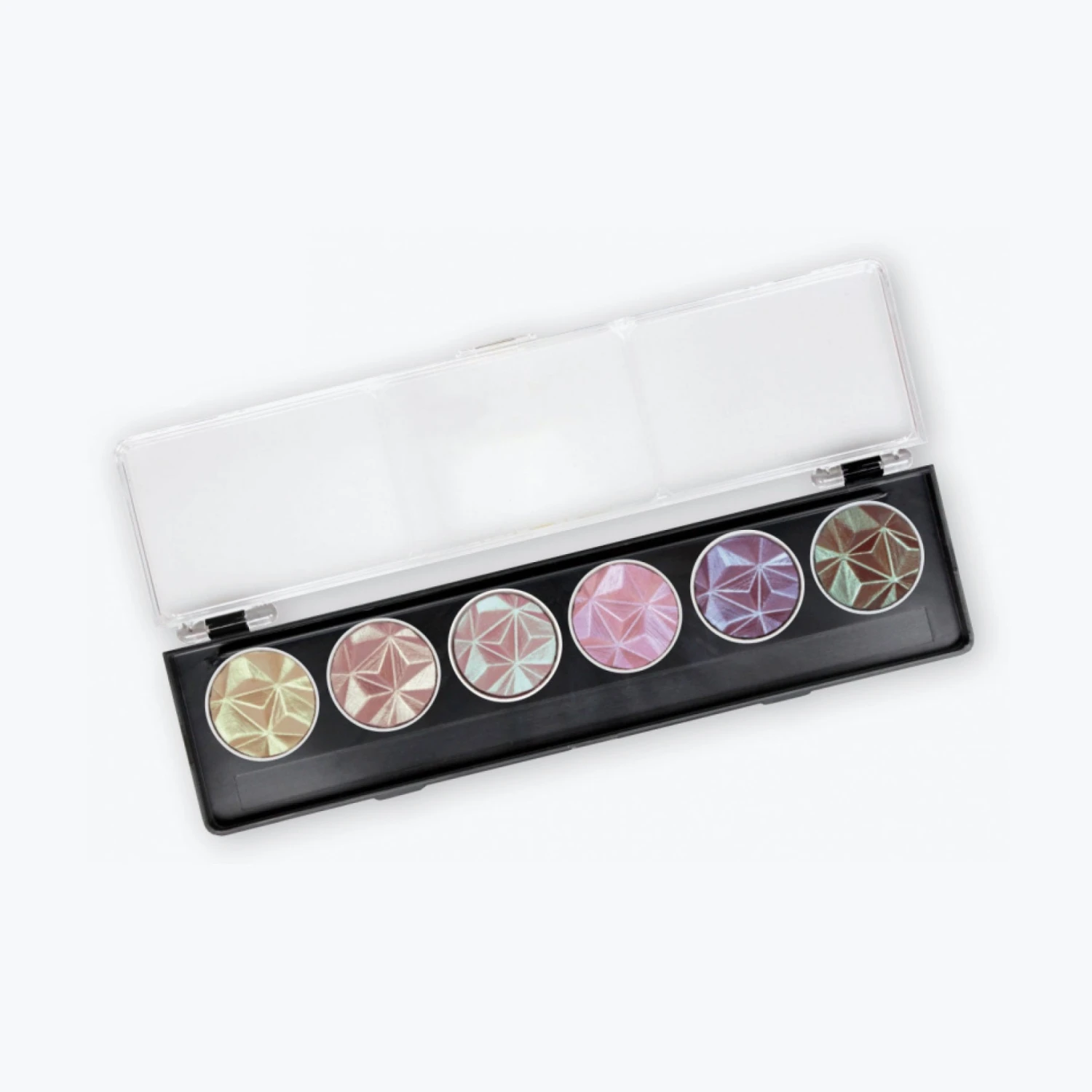 6 Pearlcolors Ø 30 mm in a plastic box. Colour pans can be exchanged.