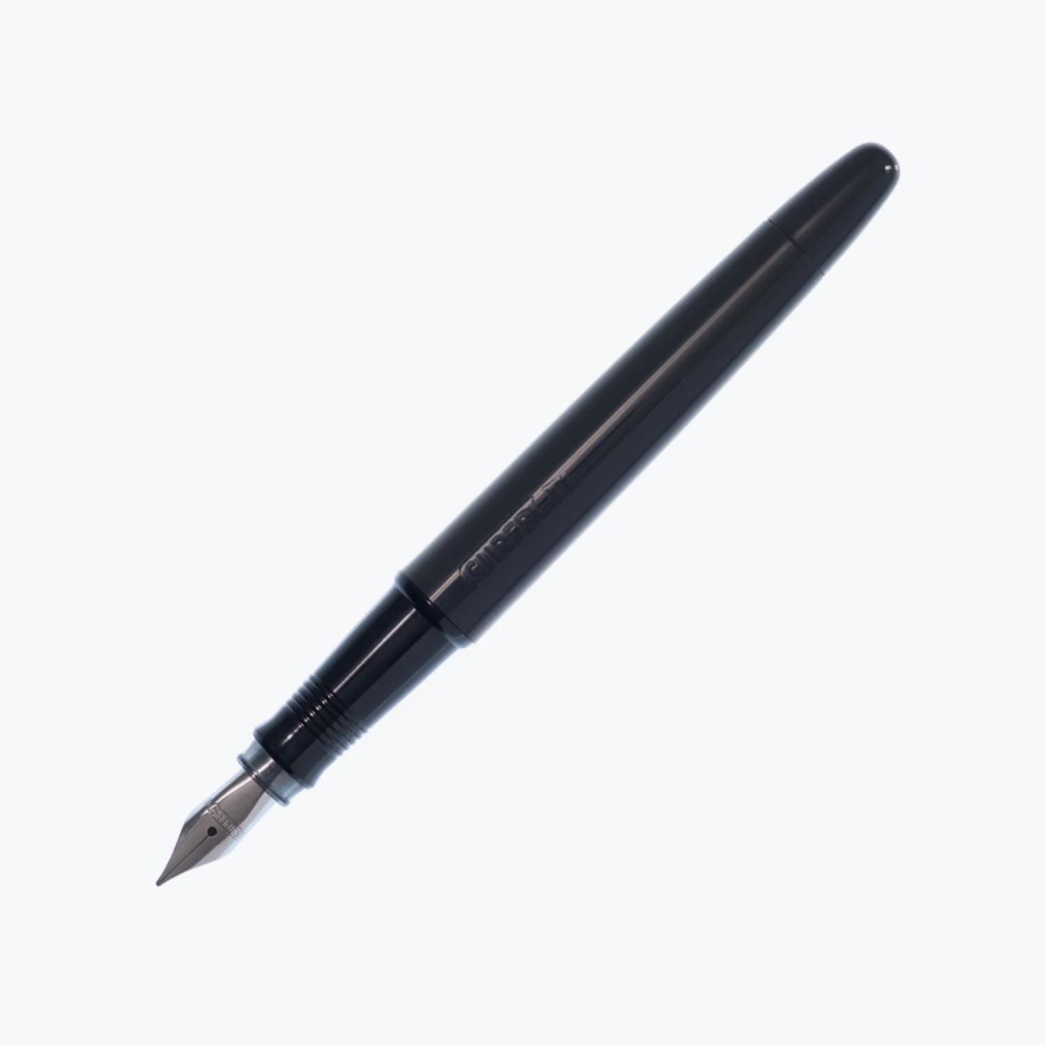 Made in Germany, the Darmstadt black Super5 is a budget-friendly fountain pen that is available in two italic stub nibs (0.5 and 0.7mm) and two round nib sizes (Medium and Broad). The rounded barrel and click-on cap are made of lightweight plastic, while the grip and clip are made of painted metal for added weight and durability.