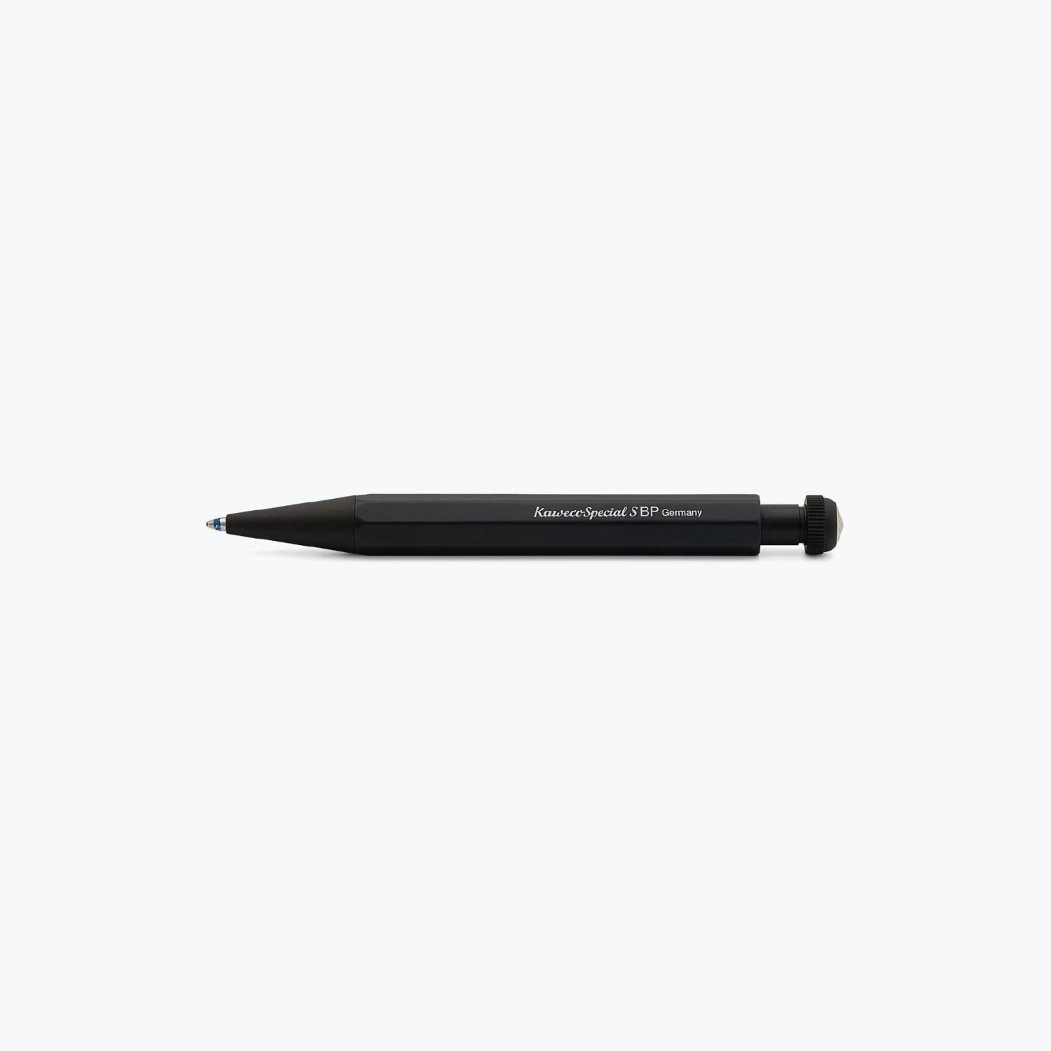 The Kaweco Special ballpoint pen is a sleek addition to the Kaweco line-up. It is made from anodized solid aluminum with a matte black finish and features a push button at the top that extends and retracts the nib. This Mini version measures 10.5ch in length, compared to 14.1cm for the full-length version.