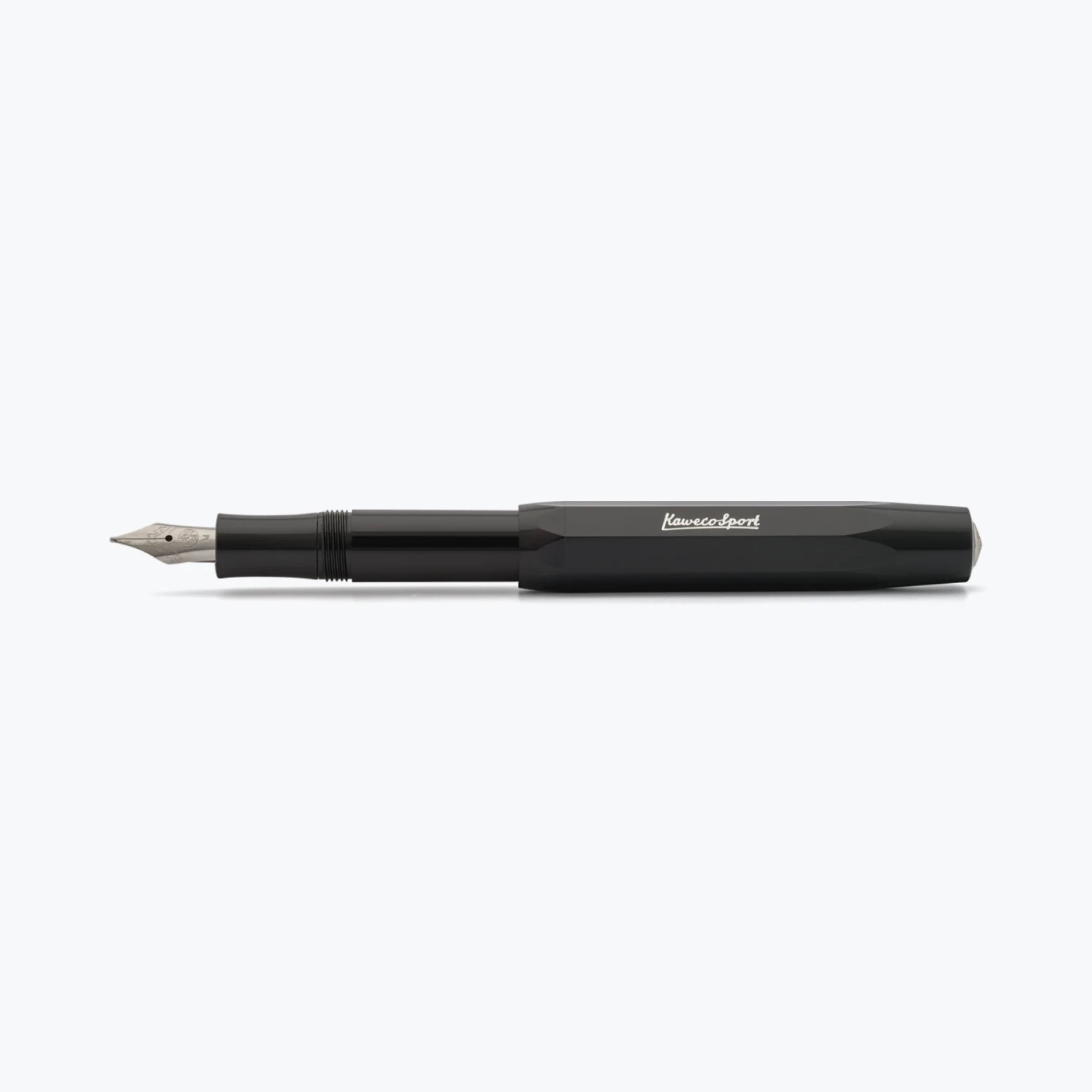 The Kaweco Skyline Sport closely follows the original octagonal design, which is very compact at just 10.6cm (capped) and 12.9cm (posted), making it easy to carry around and comfortable to write with. It is made from tough but lightweight plastic and features a silver metal Kaweco logo on the top of each cap, which screws on for extra security. Each Classic Sport fountain pen comes with a chrome-plated steel nib.