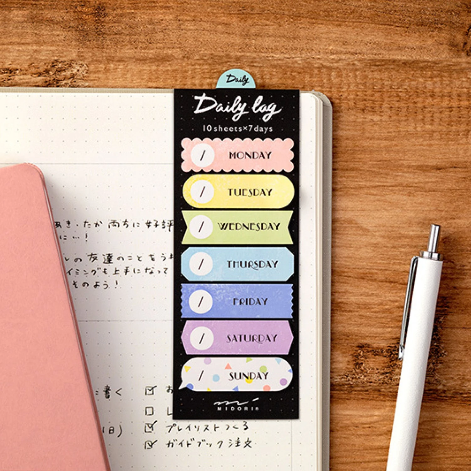 The Midori Daily Log stickers are perfect for keeping your journal organised, while adding a touch of colour and style. They can be used in a notebook, journal or planner to highlight important dates or notes.Â