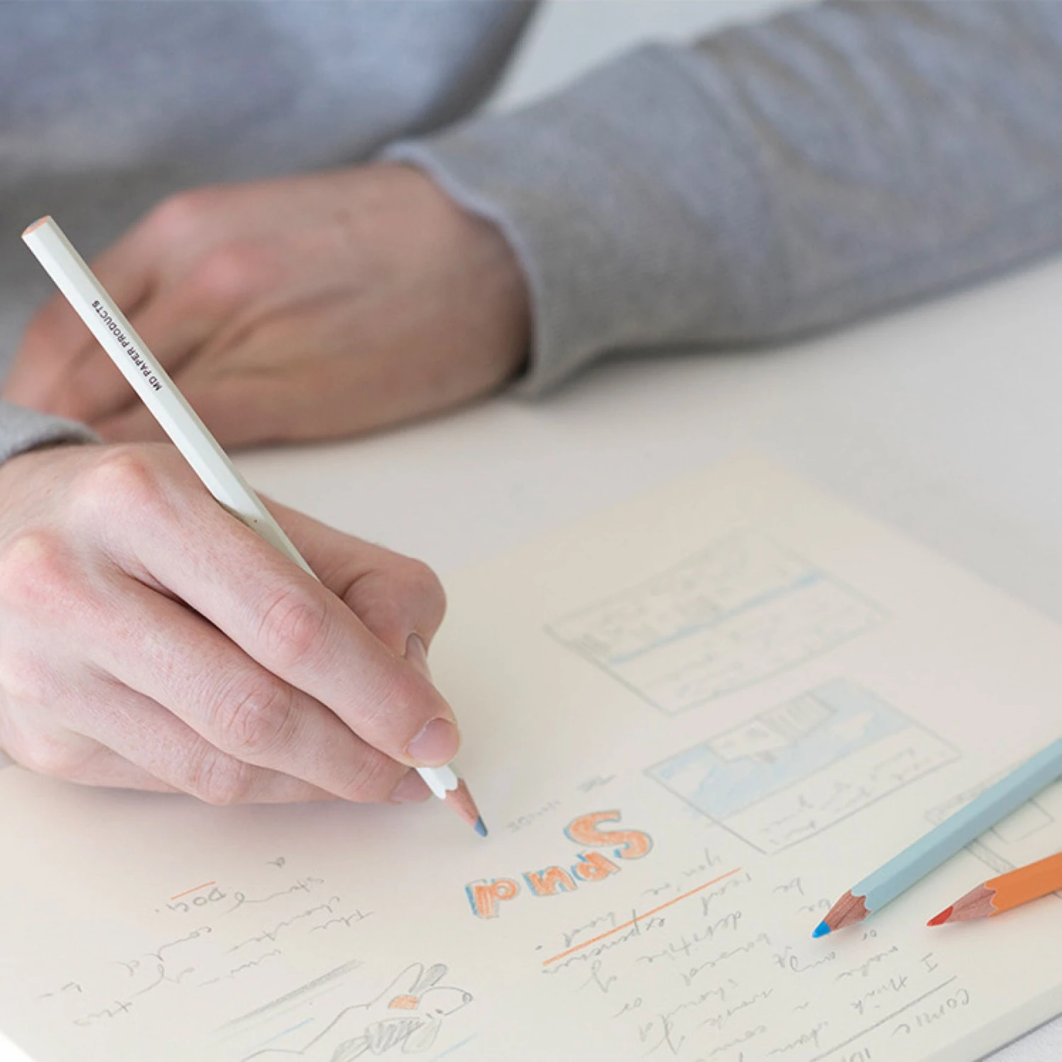 With an understated yet unique design, the Midori Pencil extends the MD Notebook experience to the fingertips. The Midori Coloured Set features three colours – grey, light blue and orange, while the honeycomb-shaped body makes it easy to hold with the thumb, index finger and middle finger.