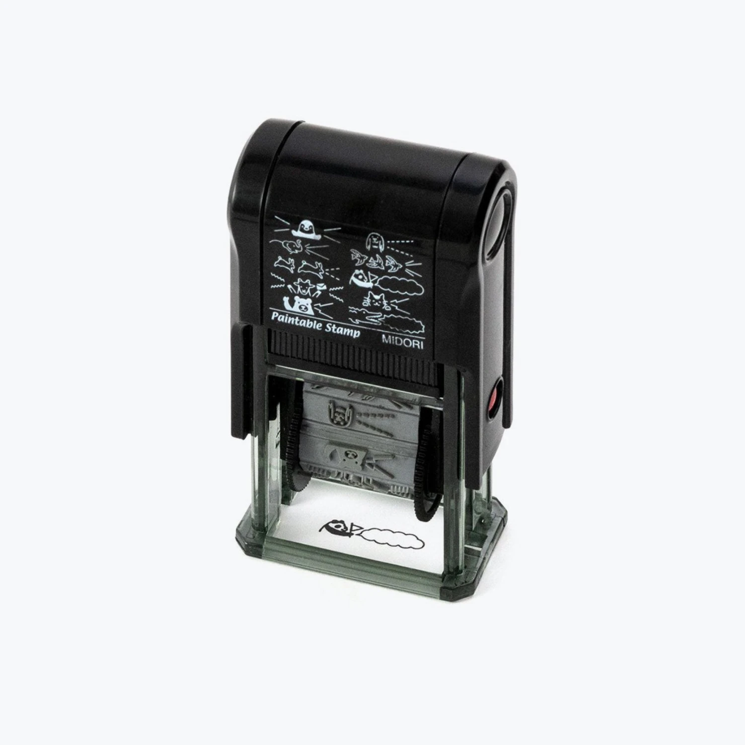 The Midori animal rotating stamp features 10 designs including a penguin, elephant, panda and cat. To use, simply rotate to the desired design and press down on the page. The stamp can be used 2,000 times and when the ink runs out, it can be topped up using the Midori ink refill.Â