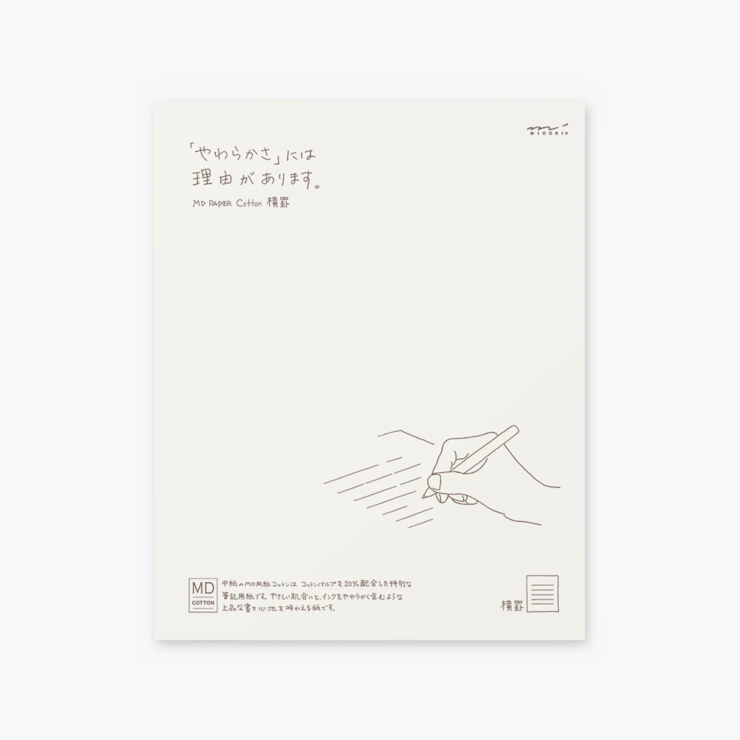 Midori MD Cotton paper contains 20% cotton pulp and is slightly textured, making it perfect for both pencil and fountain pen.