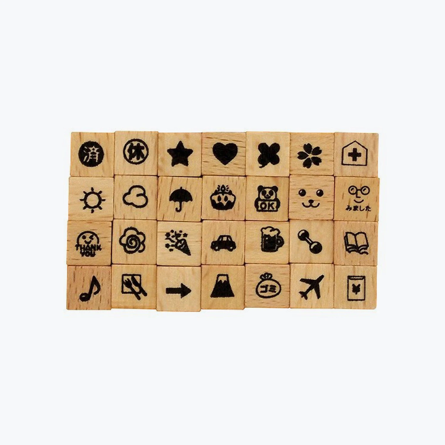 The Kodomo No Kao mini stamps can be used for journalling, scrapbooking, card making, planners, invitations or any other creative projects that you can think of. The symbols set features 28 stamps including a star, heart, car, clover, plane and book.