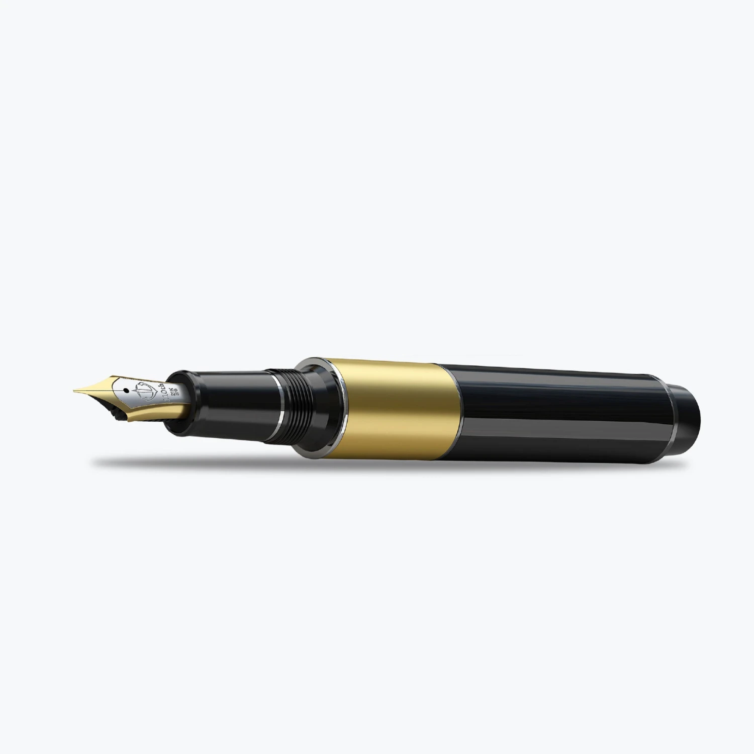 The Premium model features a 21-karat gold barrel alongside a matte black finish. Both the flexible and resilient 21-karat gold nib and the 21-karat gold barrel are inseparable materials for fountain pens, and both promise the best writing experience as a genuine instrument, not just a luxury material. Presented in a chestnut wood box (nagurime texture) with a a bottle of 110th anniversary Sailor Blue-Dawn ink. Included also is a linen pen sheath, cartridge ink, cleaning cloth, product manual, instruction manual and warranty card.
