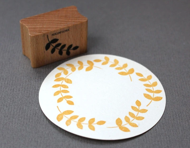 Material: varnished beech with motif sticker, the rubber stamp is mounted on a cushioning layer of foam.