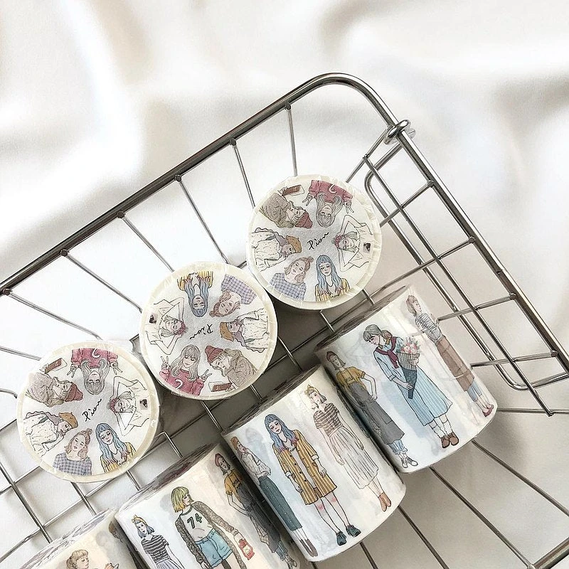 Designed by Pion, the 46 Girls washi tape stickers are perfect for journalling, scrapbooking, photo albums, invitations and letters or paired with rubber stamps, stickers and other embellishments. The stickers are on white, release paper tape so each design can be cut out and used individually.Â