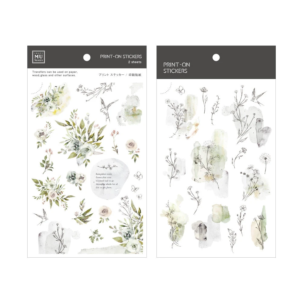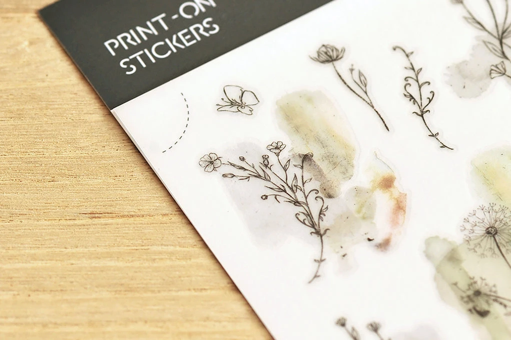 Unlike other sticker, the Print On Sticker do not have a sticky back and are applied by applying pressure to the sticker with a wooden transfer stick (eg. MU Print On Wooden Stick). The stickers appear printed on the surface vs. applied. They can be applied on paper, wood, glass, etc.