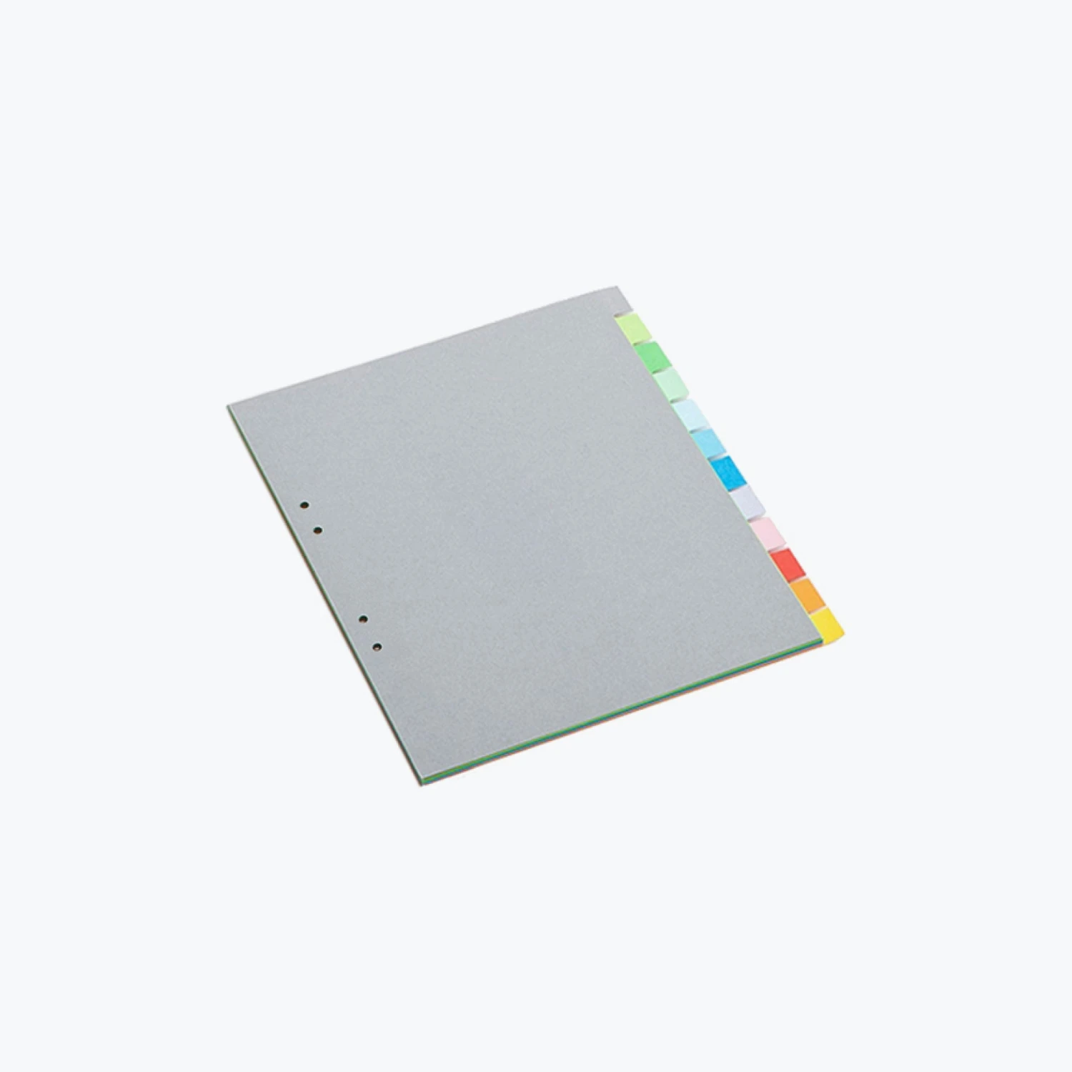 Index tabs are perfect for neatly labelling documents and folders to make the information easily accessible. This set features 12 light grey sheets, with coloured tabs down the right hand side.