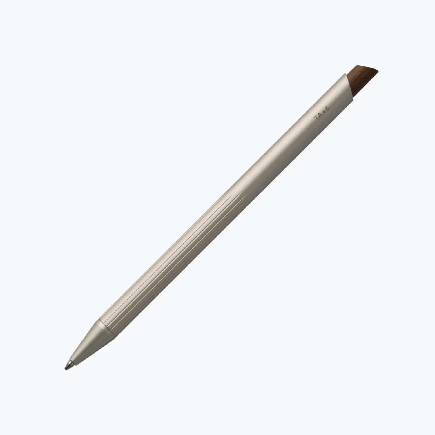 The ballpoint pen is made using unassuming aluminium and environmentally friendly bamboo. It is designed with a silent compression component, a comfortable 23g in weight and smooth writing refills from German Schmidt.