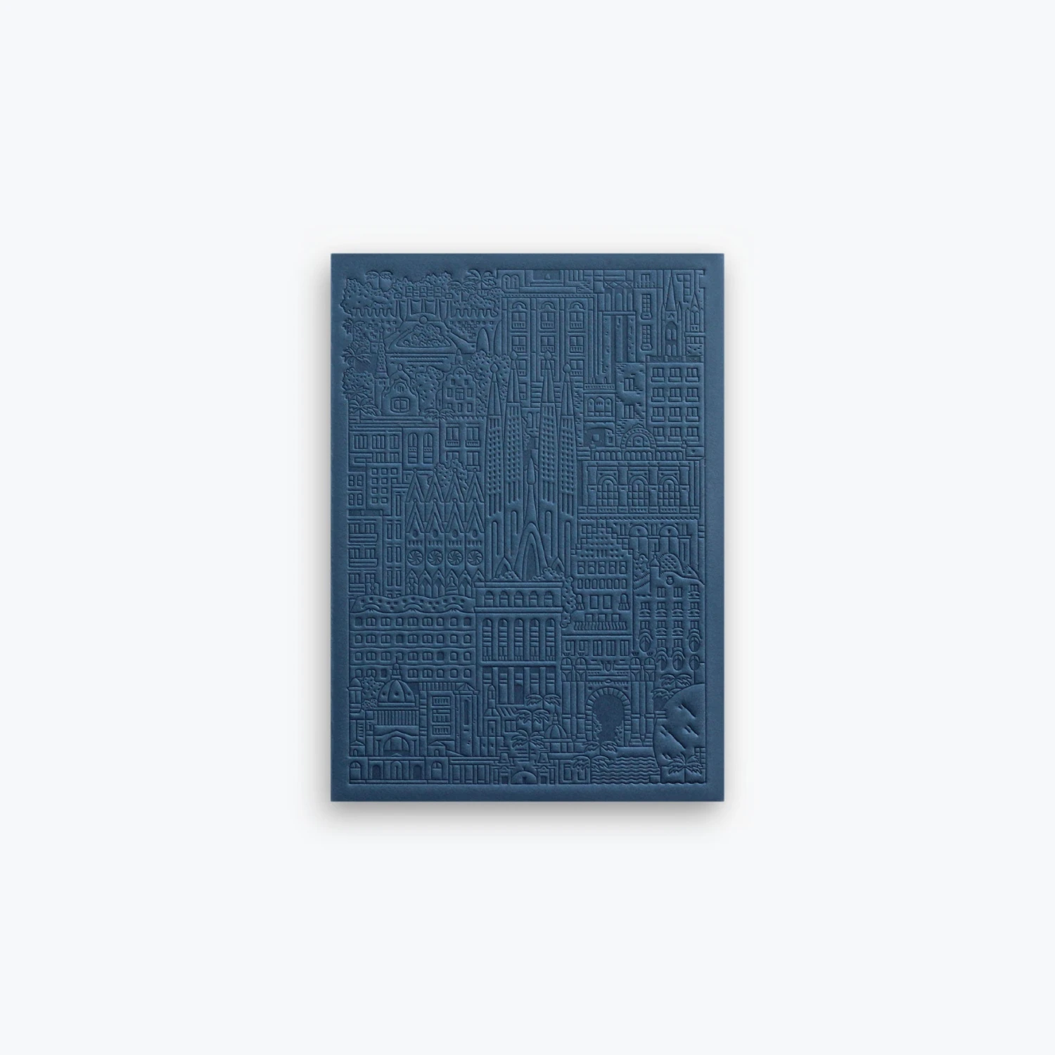 Celebrate the cityscape of Barcelona with this intricately designed and beautifully made The City Works notebook. The hand-pressed cover is lay-flat bound in the Netherlands, ensuring the notebook remains perfectly flat when open. The cover paper is from Colorplan, England, while the 144 blank pages on the inside are from Munken, Sweden.