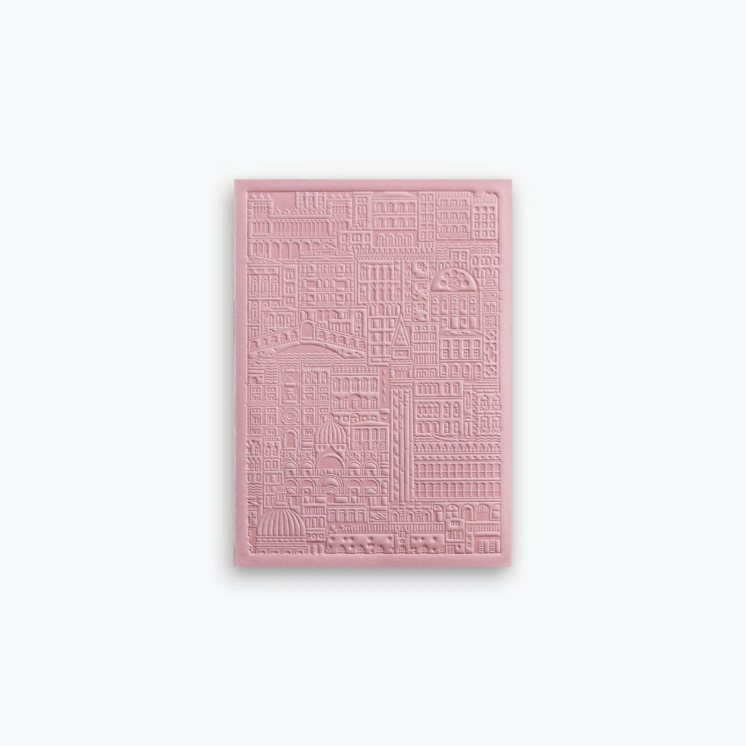 Venice, the city built on water, is intricately inscribed into this high-quality notebook. The pink cover features iconic landmarks including the canals, Rialto Bridge, Saint Mark’s Basillica and Doge’s Palace – how many can you find?