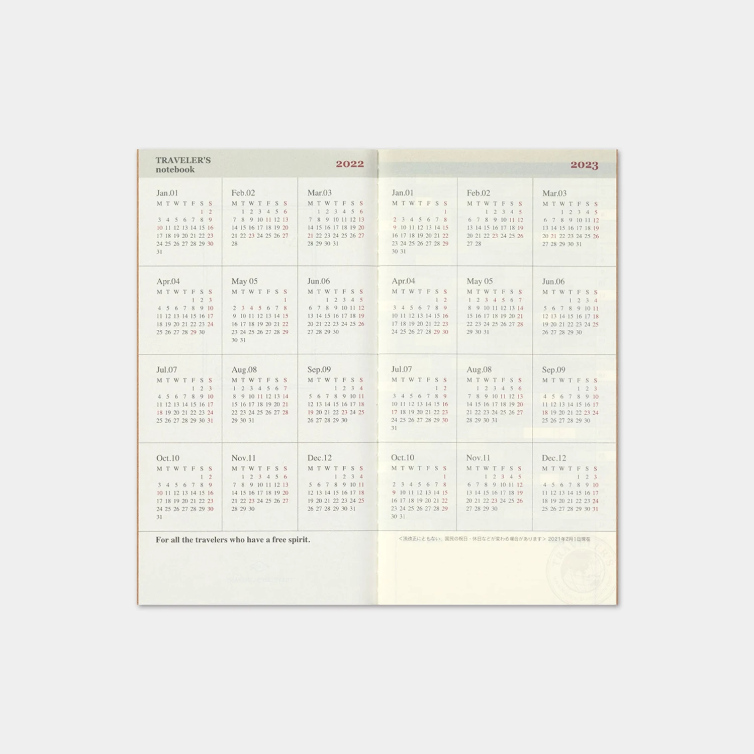Traveler’s Company – 2022 Diary – Insert – Regular – Monthly Traveler’s Notebook