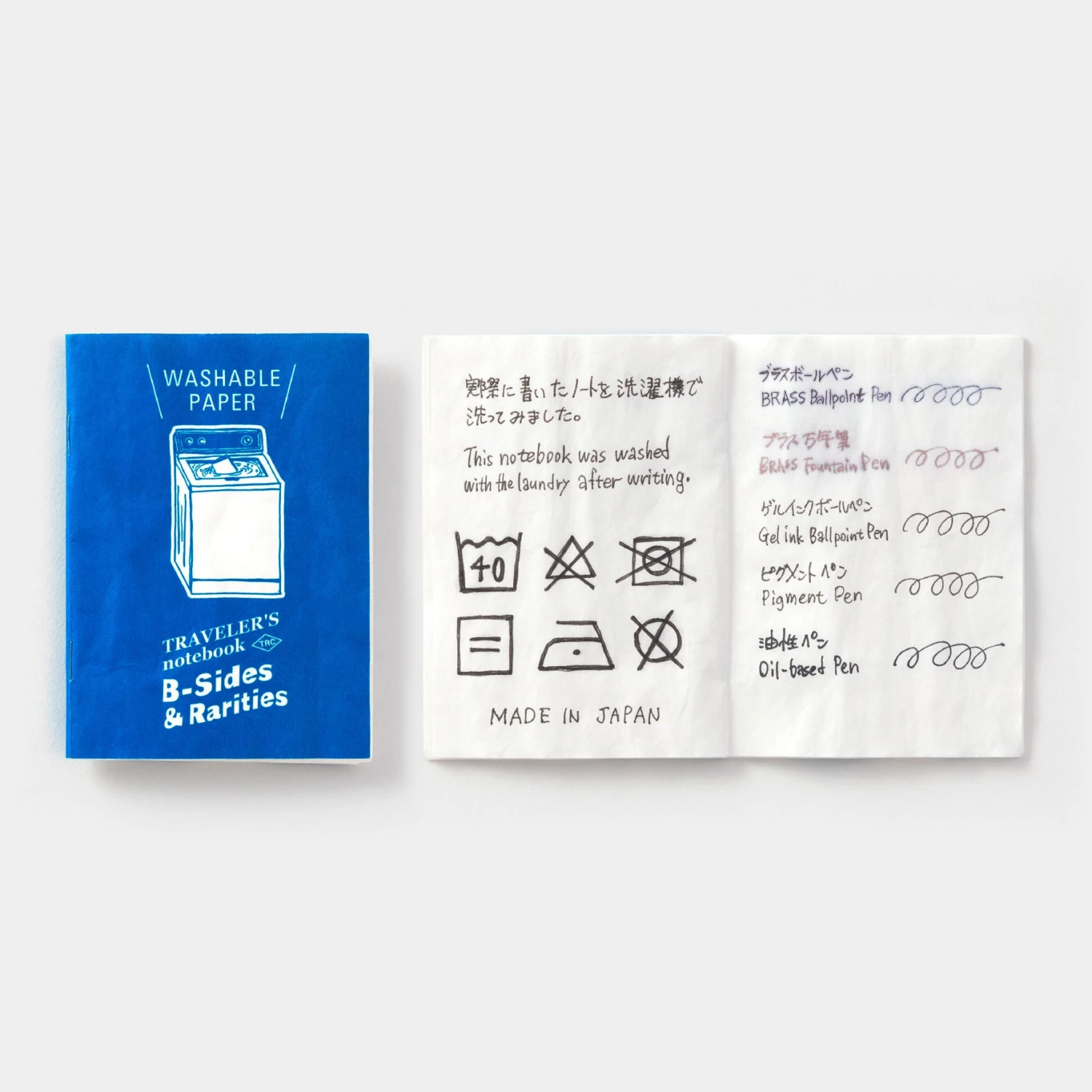 The passport size washable paper insert is made from the same material as the laundry paper tag so it won’t disintegrate if it gets wet. When washed in a washing machine, the paper is wrinkled like a freshly washed shirt, but can still be used as a notebook. The colours fade with water-based dye inks, but pigmented inks hardly come off!