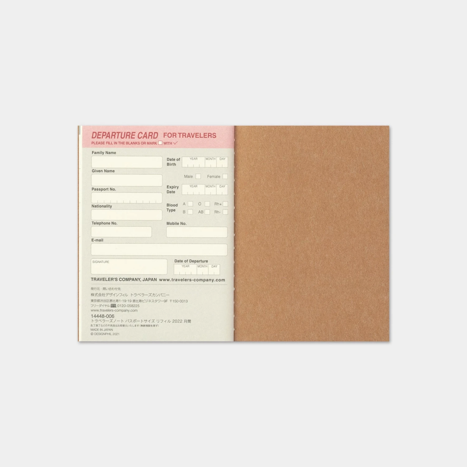 Traveler’s Notebook Traveler’s Company – 2022 Diary – Insert – Passport – Monthly
